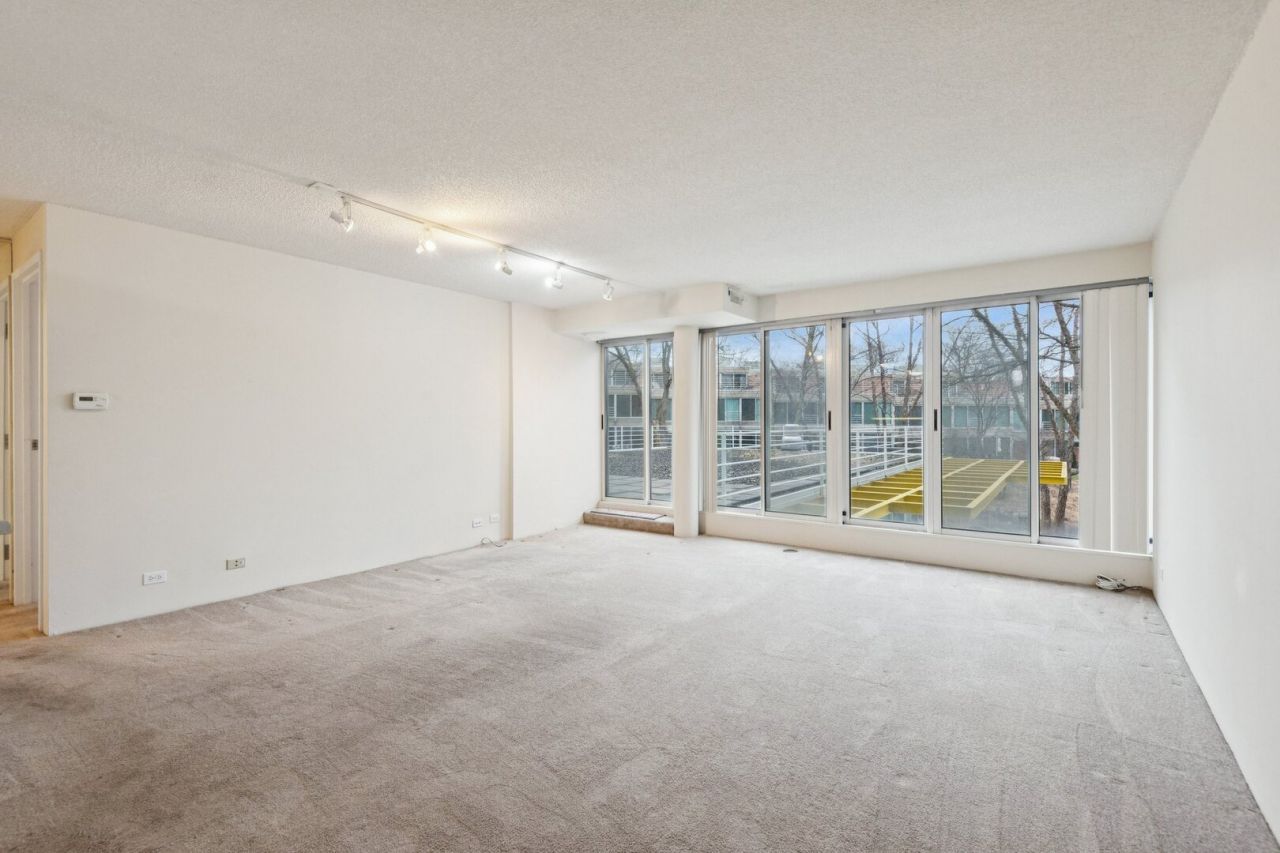Experience refined daily living at Optima's North Pointe. This charming one-bedroom residence offers captivating views of the pond, fountain, and professionally landscaped grounds, upon entry. The personal sundeck, situated above the indoor pool, is one of only two available at 2555 Gross Point Road and is accessible from both the living/dining area and the bedroom, providing a private retreat after a long day. The galley kitchen opens to the combined living/dining areas and features a breakfast bar for casual meals. The spacious bedroom includes an impressive walk-in closet. Floor-to-ceiling windows and doors throughout the unit ensure abundant natural light. The unit also provides in-unit laundry for added convenience. HVAC (2018) and new carpet (2021).Residents enjoy access to premium amenities such as an indoor pool, dedicated exercise room, heated garage parking, and additional storage. Ideally located near Old Orchard shopping center, a variety of restaurants, and the I94 expressway, this home offers both comfort and convenience.